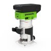 5-ступенчатая регулировка оборотов позволяет решать разные задачи. Инструмент оснащен функцией поддержания оборотов под нагрузкой и функцией плавного пуска, позволяющей избежать толчков и рывков при запуске. В комплект поставки входят одна фреза и направляющая.