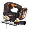 Лобзик аккумуляторный WX542. Аккумулятор 2,5 Ач. Зарядное устройство. Полотно для резки дерева 1 шт. Адаптер для пылесоса 1 шт. Пластиковая накладка для основания; Кейс |