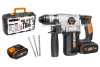 Роторный перфоратор WORX WX392.9 - мощный инструмент ,с высокой скоростью сверления в бетоне максимальным диаметром до 26 мм, скоростью вращения от 1000 до 5000 об/мин и ударной энергией 2,2 Дж.