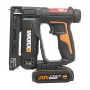 Степлер WORX WX843 20V — станет незаменимым помощником, когда нужно быстро скрепить материал скобами или каркасными гвоздями! Степлер мгновенно развивает скорость до 85 гвоздей/мин, что позволяет выполнять работу оперативно. Вы можете контролировать глубину и точность забивания, благодаря встроенной функции регулировки. На одном заряде АКБ на 2 Ач степлер производит до 2000 выстрелов.