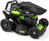 Газонокосилка имеет ширину скашивания 46 см — достаточно большую, чтобы обработать площадь до 750 м2 на одной зарядке благодаря двум слотам для батареек и достаточно маленькую, чтобы хранить на складе с другими инструментами. Данная модель оснащена функцией 3-в-1: мульчирование, сбор травы и боковой выброс. Травосборник имеет объём 55 литров, что дает вам больше времени для кошения.