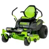 Под управлением интеллектуальной системы Greenworks Intelligent Power все компоненты устройства: аккумуляторные батареи, двигатель привода колес, двигатели привода ножей и электронные контроллеры работают как единое целое. Используемые аккумуляторы совместимы с другими устройствами профессиональной линейки Greenworks Commercial 82V.
