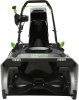 Для безопасного включения предусмотрена кнопка-предохранитель, как и на всей аккумуляторной технике Greenworks. Ручка имеет складную конструкцию. Снегоуборщик работает от аккумуляторной батареи 82V (2,5 или 5 Ампер/час), которую можно использовать с другими с устройствами Greenworks из линейки 82V.